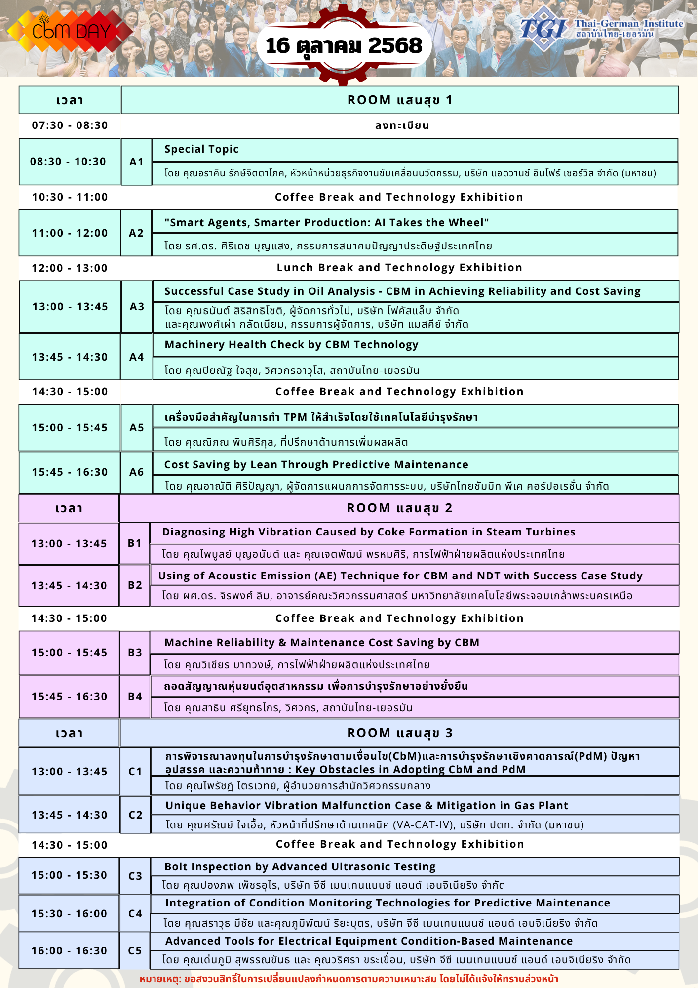 งานสัมมนาทางด้านงานบำรุงรักษาเครื่องจักรด้วยเทคโนโลยีในยุคของอุตสาหกรรม 4.0 ภายใต้แนวความคิด “Connecting Technology” การฟื้นฟูสภาพงานบำรุงรักษาหลังสถานการณ์โควิด 19 ซึ่งจะอัดแน่นไปด้วยข้อมูลและเทคโนโลยีที่ทันสมัย